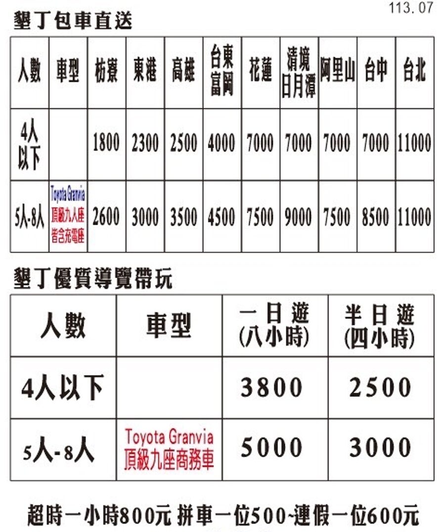 景點接駁|墾丁包車|包車導覽報價