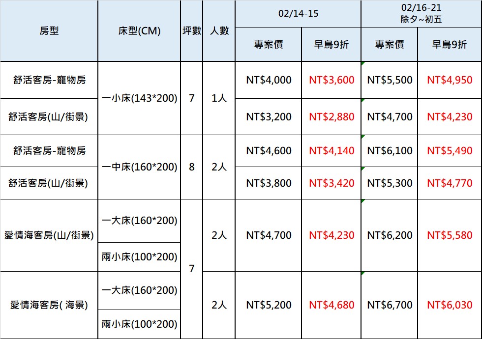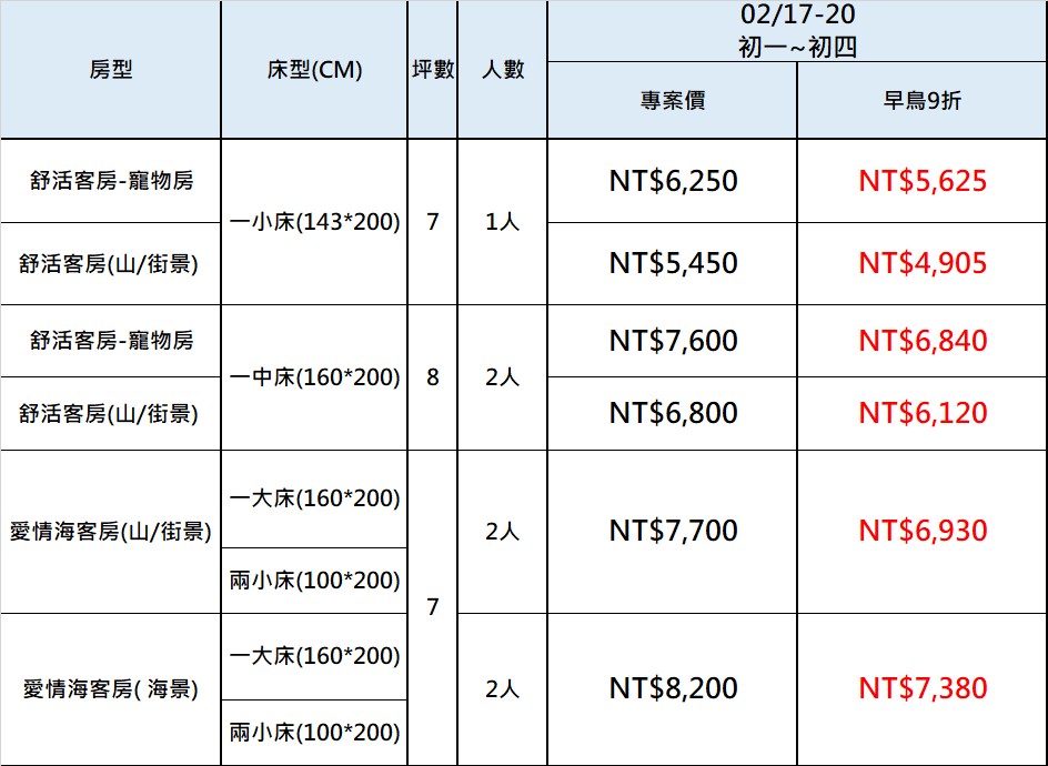 【早鳥預定】12/31前完成訂房,享9折優惠!!