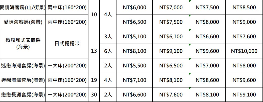 ※ 如超出房型住宿人數,請提前告知,並依現場規定加收加人費用。