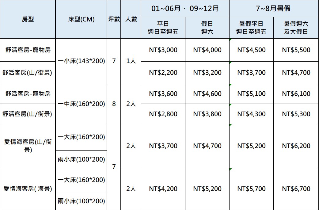 7.本報價表不適用農曆春節期間,平假日定義依飯店公告行事曆為主。