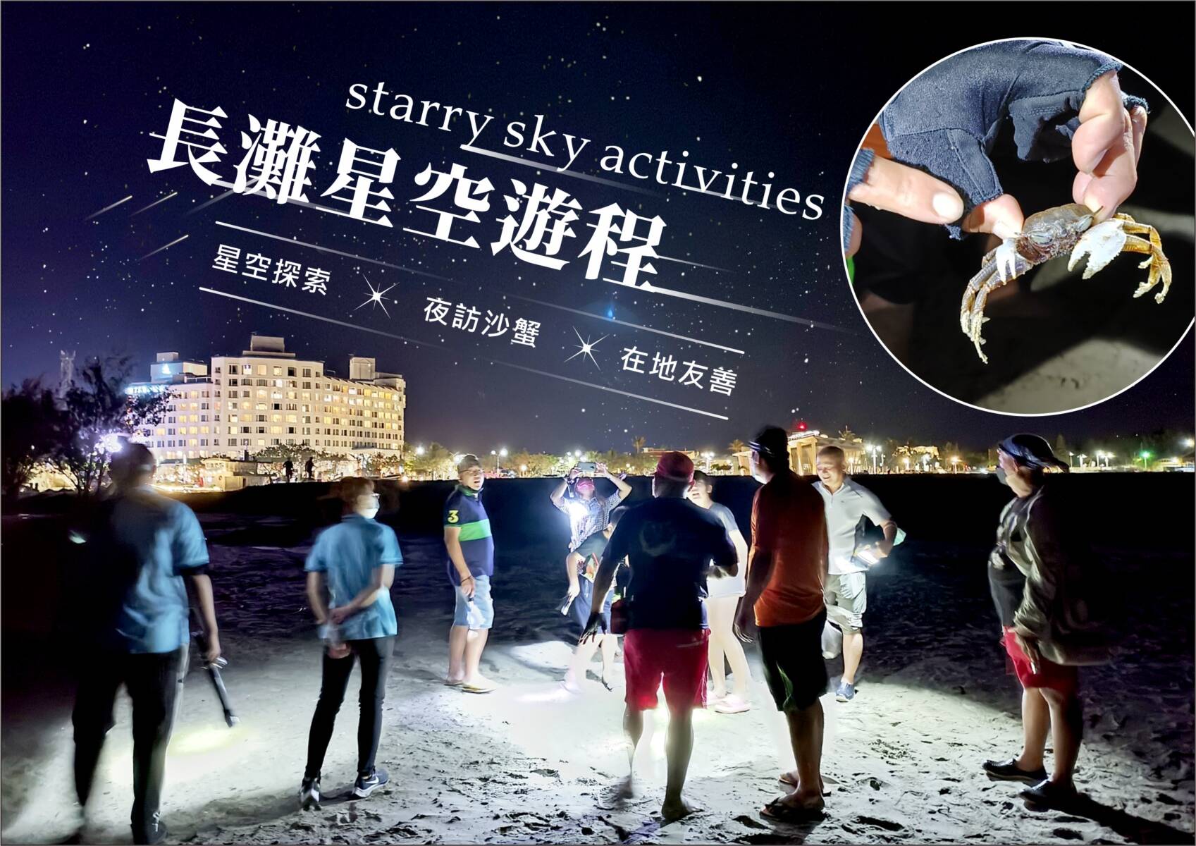 沙灘生態星空探索:夜間星空導覽,滿天星空下、認識夜間出沒的沙馬。
